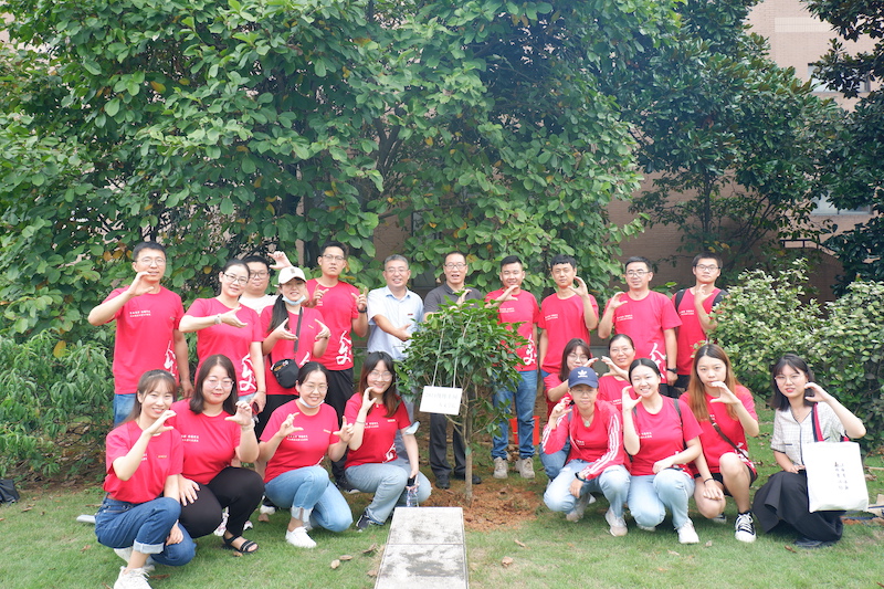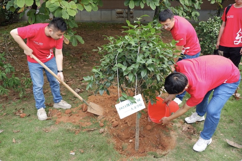 9月12日上午,我院党委副书记莫世亮、副院长王荣华、学工办柴培森老师与2021级博士研究生新生们齐聚人文学院“博士林”,共同栽种下“松阳红”山茶树。