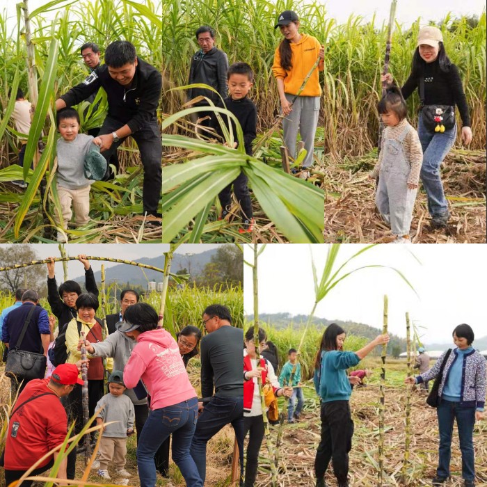 午后,一行人来到汤溪九峰山下的家庭农场。在乡间小道品尝过原汁原味的农家菜肴和学院工会主席高玉海珍藏的陈年佳酿之后,大家兵分两队展开采摘、垂钓等活动。许序雅、吴海庆、卢培栋、胡伟等垂钓达人全副武装、迅速就位,大有一展身手的架势;小朋友们则在采摘能手的带领下,尽情体验田地亲手拔甘蔗、上树采摘柚子的乐趣。有说有笑、挥汗如雨,经过三个多小时的努力,大家满载各自的劳动收获,有甘蔗、柚子,有红薯、鲜鱼……,迎着夕阳余晖踏上归途。