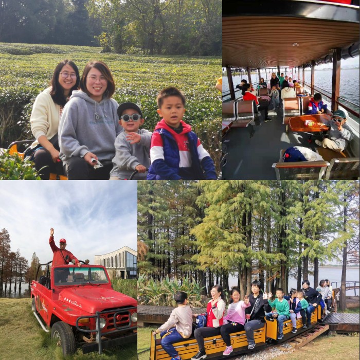 此次活动的第一站是位于兰溪境内的兰湖旅游度假区。不到一个小时的路程,大家即来到兰湖景区。时值深秋时节,园内银杏、水杉在煦日暖阳的映照下呈现五彩斑斓之态,让人恍若踏入油画之境。无论是漫步于风铃声脆的林间小道,还是泛舟在潋滟波光的湖面之上,亦或乘坐小火车穿梭于千亩茶园之间,都能感受到逃离都市喧嚣的畅快惬意,尽情享受与同事或家人轻松愉快的美好时光。