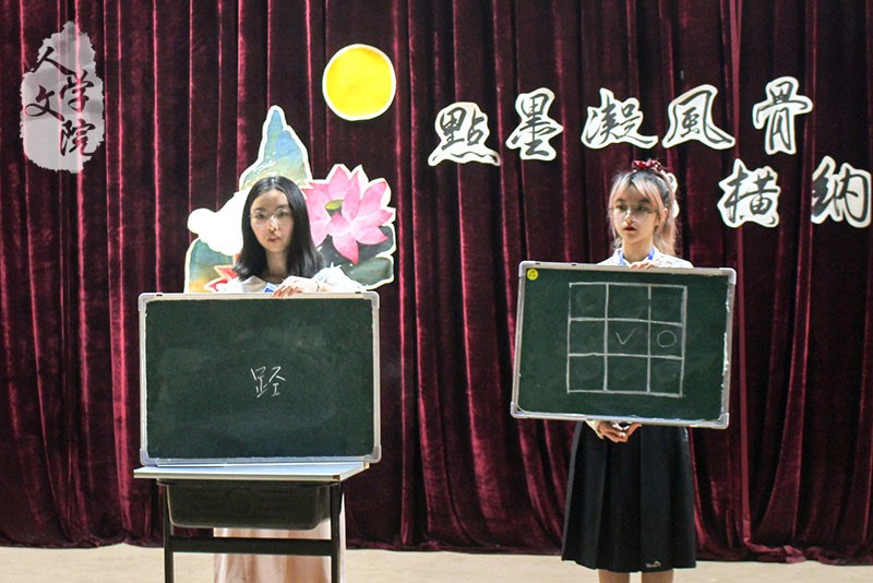 题目由难到易,选手们根据汉字的“甲骨文”“小篆”“草书”“楷书”四个字体,仔细推敲,斟酌,在小黑板上书写答案。经过一场激烈比拼,4号、8号、12号、15号选手胜出,进入半决赛。