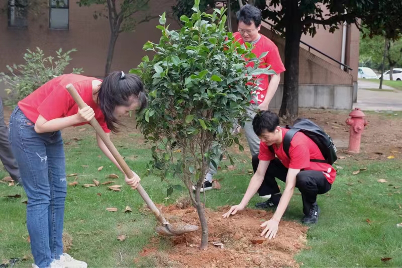 9月14日上午,我院副院长王荣华老师、学工办柴培森老师与2022级博士研究生新生们共聚“博士林”,一同栽种下“十八学士”山茶树,为“博士林”再添新绿。