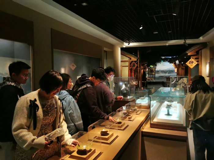 在金华市博物馆,同学们详细浏览了金华从史前至当代的历史。“历史学视野中的金华大地”这一主题,受到重点关注。在志愿者的耐心讲解下,同学们考察了金华从上山文化始,历经先秦姑蔑国、秦汉六朝东阳郡、隋唐宋元婺州,至明清金华府的历史建制沿革,了解了诸如婺州窑、举岩贡茶、金华火腿、金华酒、金华罗以及婺剧等文化遗产。金华历史上,有吕祖谦、陈亮、唐仲友等南宋名儒大家,亦有邵飘萍、黄宾虹等近现代爱国人士;既有北山四先生的传道授业,又有其后世传人何氏三杰的不凡贡献;既有上山文化遗址,又有徐渭礼文书的重要遗存。当看到浙师大校园新攀岩场工地出土的“透雕花草纹白玉叶”时,全场不禁齐声发出感慨,金华深厚的历史文化底蕴与我们间的距离顿时被进一步拉近。我们对金华,这座承载了大家求学之道的城市,有了更深的情感与联结。