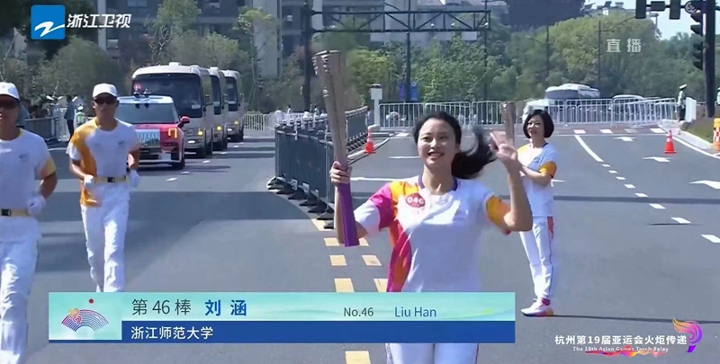 9月19日,恰逢浙江师范大学东体育场开赛第一天,对于同日传递火炬的刘涵来说,更是意义非凡。而身为浙师“小青荷”的一员,她表示,将继续尽己所能在接下来的亚运赛事中做好相关志愿服务工作,自觉当好浙师东道主,真正展现出活力自信的浙师风采。