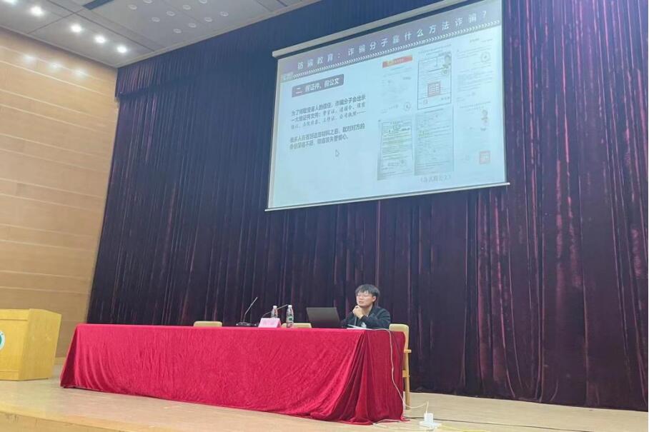 着眼于校园生活,蔡霜讲解安全知识:提防电信诈骗,保护财产权益;防范火灾隐患,落实消防安全;注意交通文明,坚持绿色出行。蔡霜强调,如遇安全问题,学生可以通过拨打校园110服务报警中心电话,第一时间保护自己。最后,他通过视频进行艾滋病防治教育,向在场同学传达艾滋病的病理、危害和防治措施。