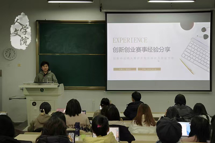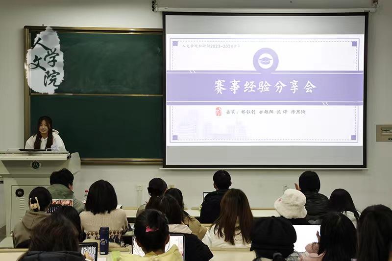 12月1日晚上,我院赛事经验分享会于25幢107教室举行。本次分享会由我院汉语言文学203班金越阳、汉语言文学211班徐思琦、汉语言文学226班林钰钊、汉语言文学226班沈烨担任主讲嘉宾。本科生线下到场参会。