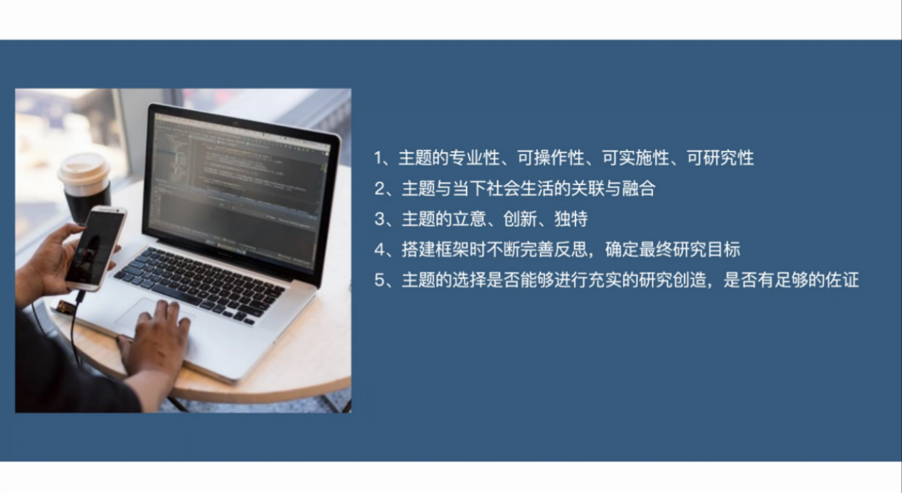 张茜茜通过呈现部分新苗课题立项的项目名称以及文理科项目对比,指出文科的项目很多是基于实践的探索,并且文科的主题更多需要体现人文性和实践性,必须具有可研究性。接着她提出不同类别的比赛对项目要求的侧重不同,并介绍了新苗的四个立项导向。然后她以自己的项目为例剖析大小标题并强调了拔高价值的重要性。最后她详细分析项目的研究范围、中心问题、研究模式三个细节,对主题选择的经验进行总结。