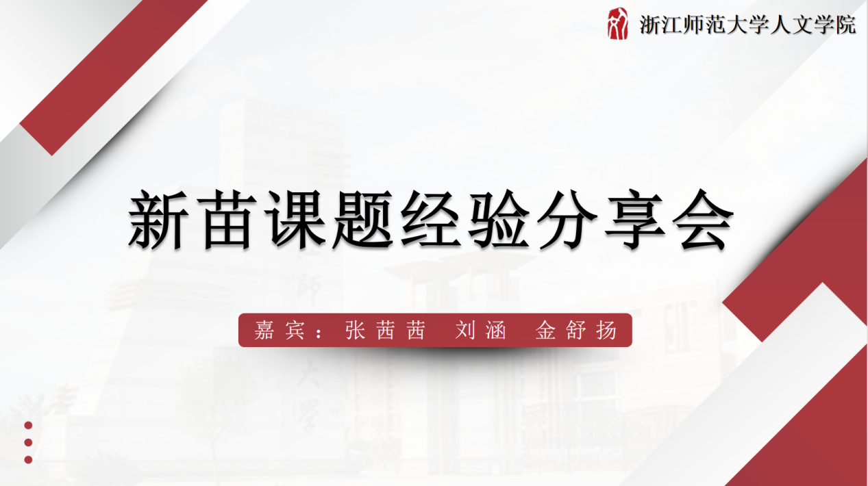 1月24日下午,我院举行线上新苗课题经验分享会。本次分享会由校团委金舒扬老师、我院研究生刘涵、本科生张茜茜担任主讲嘉宾,我院部分本科生参会。