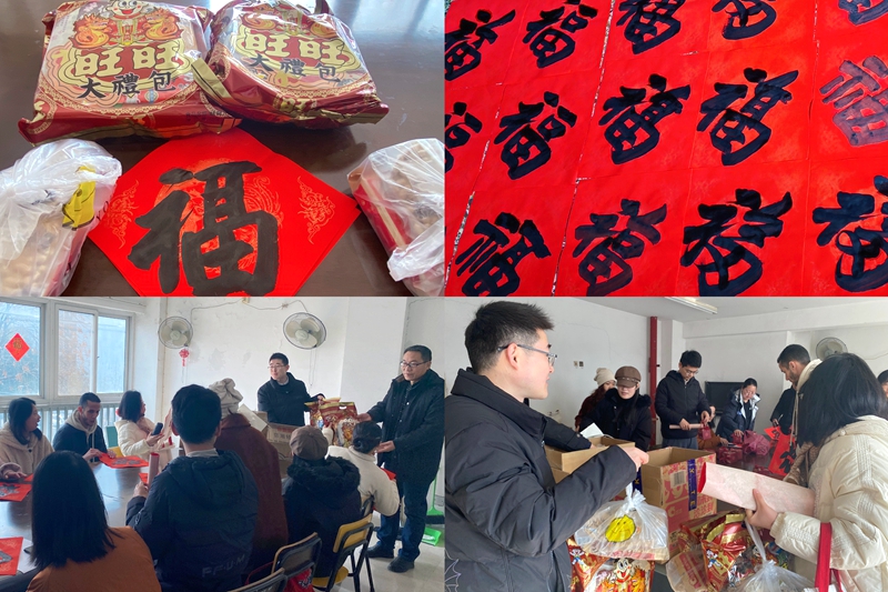 紧接着,在其乐融融的氛围中,在场老师热情满怀,为留校学子分发暖心年礼。一份份旺旺大礼包和新春福字套餐,寄寓着学院对同学们新的一年好运多多、福气多多的美好祝福。
