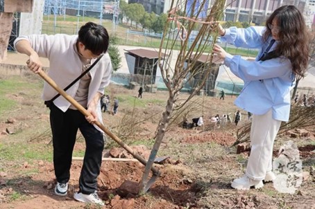 “生活中不常有这样的机会,因此我们在拿起工具时都会感到有些生疏,”擦去额上的汗水,潘雅琪同学感慨道,“这次植树活动让我们走出了教室,体验到亲手种下树苗的快乐。”
