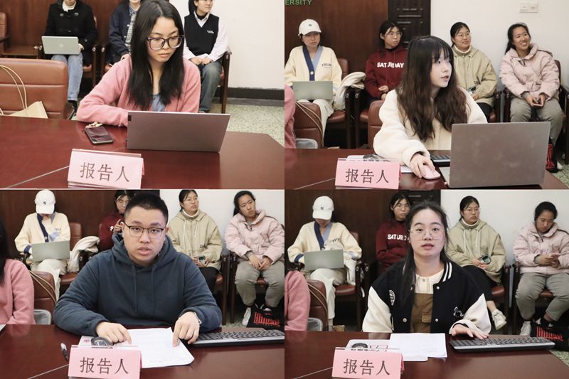 报告会伊始,比较文学与世界文学专业率先展开报告。丁洋的报告题目为《T·S·艾略特〈大教堂凶杀案〉中的基督教道德》。通过剖析《大教堂凶杀案》中的道德剧元素,她对文本内部“个体道德”“国家理性”与“基督教道德”之间的冲突形态进行有序关注,由此呼应艾略特的复古戏剧观、宗教观。余澳莲《叶芝戏剧中的道德剧元素》从叶芝戏剧作品《沙漏》的文本特征出发,挖掘其道德剧色彩,进而分析其中与创作者的神秘主义思想相契合的部分,亦围绕该作品当代的新道德寓意展开论述。