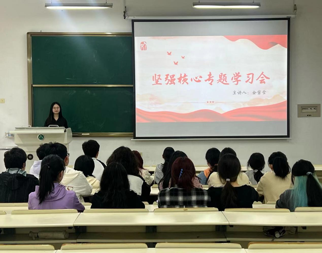 11月25日,“坚强核心”专题教育活动在25幢107教室举行。主讲人金紫莹带领与会团员、青年学习感悟在习近平同志为核心的党中央坚强领导下、在习近平新时代中国特色社会主义思想科学指引下,新时代党和国家事业取得的历史性成就、发生的历史性变革,深刻领悟“两个确立”的决定性意义,增强“四个意识”、坚定“四个自信”、做到“两个维护”。