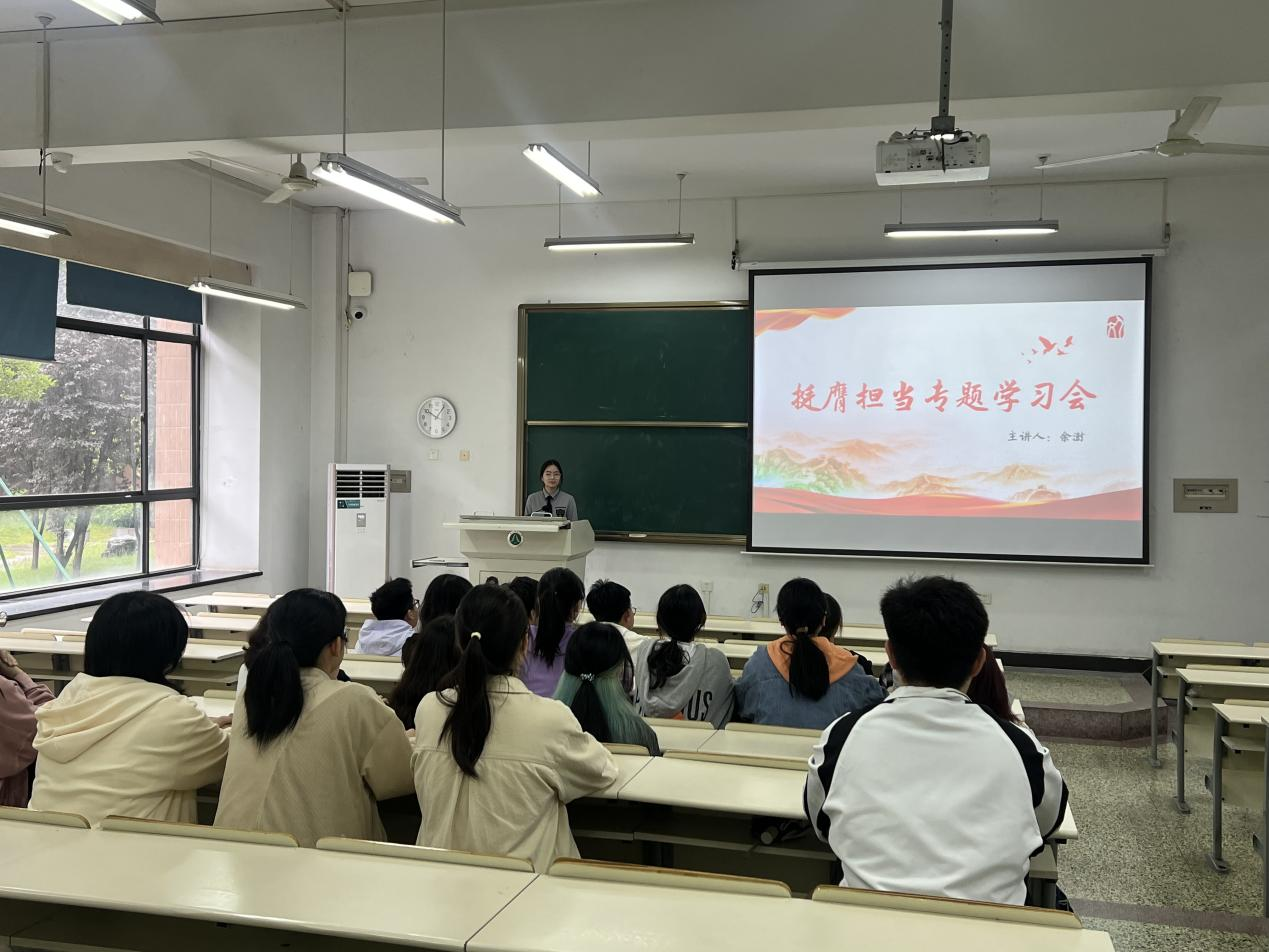 12月23日,“挺膺担当”专题教育活动在25幢105教室举行。主讲人余澍围绕“习近平总书记关于青年工作的重要思想”“习近平总书记对青年一代的殷切希望和重要要求”等,与团员、青年开展学习研讨,激发强国有我的青春激情,争做有理想、敢担当、能吃苦、肯奋斗的新时代好青年,在中国式现代化建设中挺膺担当。