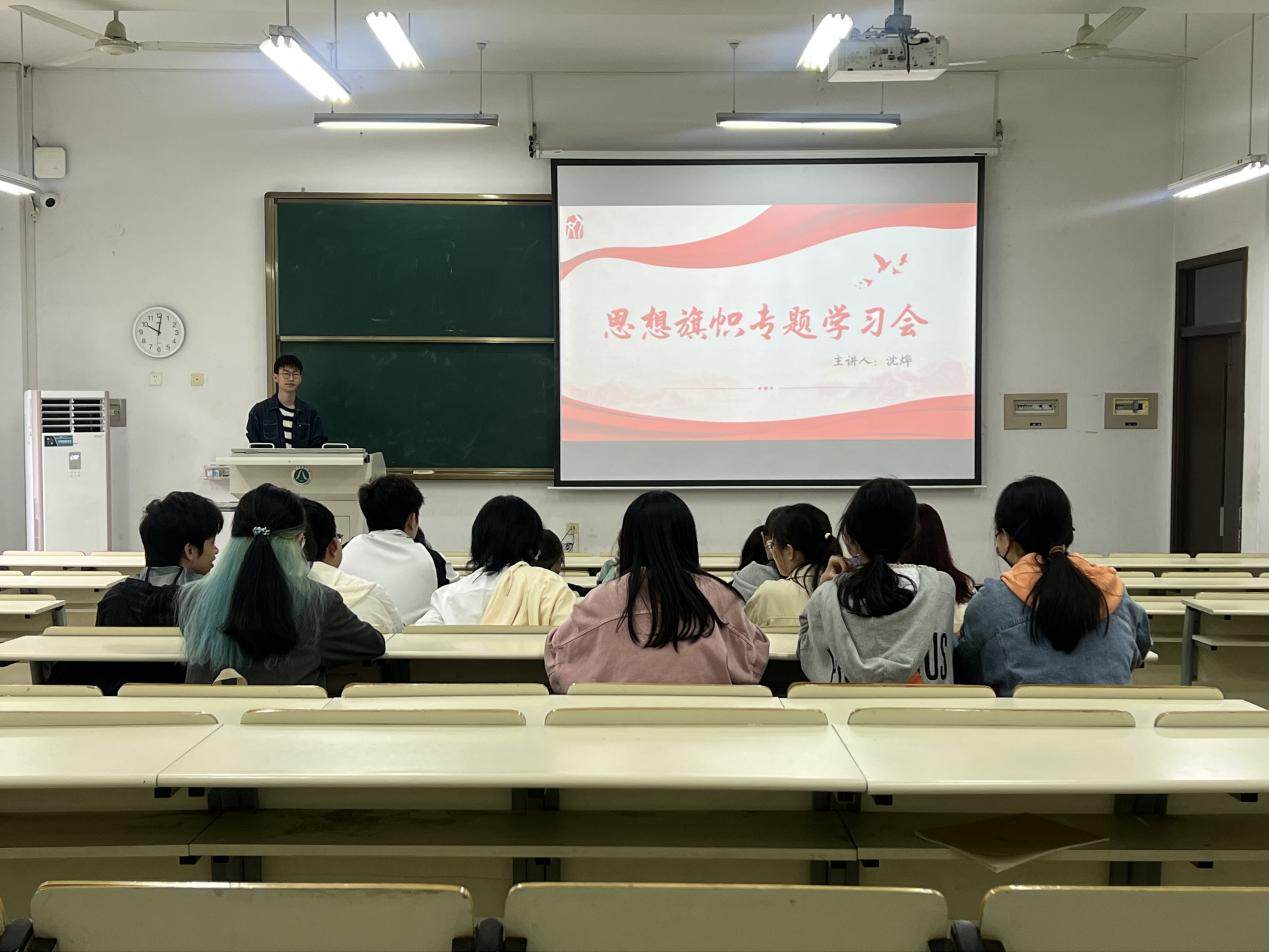 10月28日,“思想旗帜”专题教育活动在25幢112教室举行。主讲人沈烨重点围绕“两个结合”、“六个必须坚持”、“十个明确”、“十四个坚持”、“十三个方面成就”等,与团员、青年开展学习研讨,不断增进对党的创新理论的政治认同、思想认同、理论认同、情感认同。