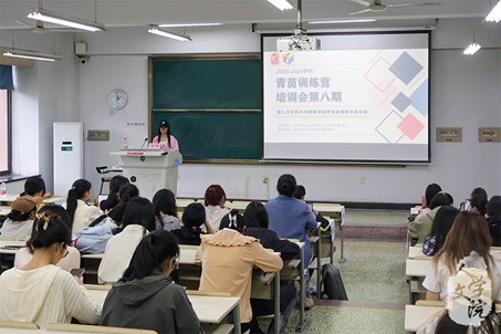 5月12日下午,人文学院青苗训练营培训会第八期暨人文学院与外国语学院学生会组织交流活动于人文楼举行。本期培训会主题为“活动视频制作全方位指南”,主讲人为校融通社哔哩哔哩视频平台主任刘畅。与会人员为人文学院学生会和外国语学院学生会成员,共计五十余人。