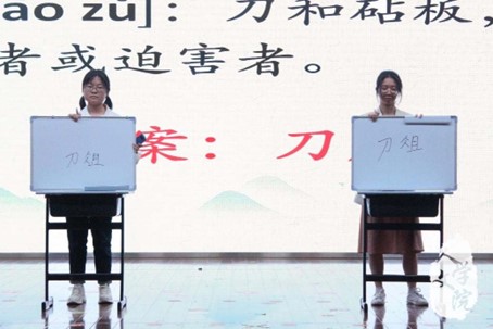 5月12日下午,个人决赛如期举行。本场比赛采取积分制与淘汰制相结合的赛制,共三个环节:“落笔生花”“一锤定音”“巅峰对决”。另外,附加游戏环节“心有灵犀”。