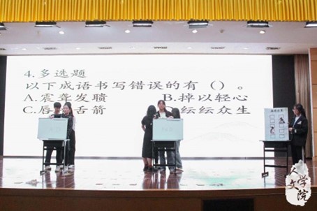 4月20日、5月12日下午,浙江师范大学第十届汉字听写大赛团体、个人决赛分别在大学生活动中心和人文学院报告厅报告厅举行。本次比赛由我院教师姚建根、贾学霄、姜其文,辅导员蔡霜、叶毓婷担任评委,部分学院代表到场观赛。
