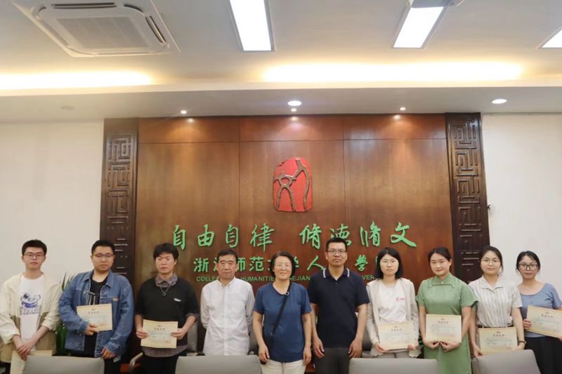 活动尾声,三位老师为本次学术沙龙作出总结性发言。研究生生涯是人生道路中的关键一环,由此作为出发点,陈彩云老师祝福各位同学成为“更了解自己的人”,能够抵达无怨无悔的境地;崔小敬老师同样期待同学们不负光阴,周全思考,收获累累硕果;刘力坚老师希望同学们勇往直前,坦然面对人生的“随机性”。三位老师为本次“丽泽论坛”人文分论坛“优秀报告人”获得者与“入围报告人”获得者颁发奖状,并与获奖同学合影留念。至此,第十八届“丽泽论坛”人文分论坛圆满落幕。