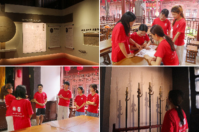 暑期社会实践期间,宣传组成员们积极参与各项活动并进行宣传。“芝英镇大学生实践交流会”为队员们初步了解芝英镇祠堂文化、集市香街、自然风物等方面的自然以及人文传统提供了契机。在永康市人大常委会副主任、芝英千年古城复兴工作指挥部常务副指挥长兼办公室主任胡潍伟的讲解下,成员们从祠堂文化出发,追溯了“百祠之都”的历史渊源,以祠堂为载体形成的芝英祠堂文化激励着后人向先贤学习。宣传组成员们在历史文化名镇办工作人员带领下实地参观了永康市非物质文化遗产馆、芝英镇廉风传承馆和芝英镇名人馆,从“以文兴业,传统非遗与五金相融”“以文润城,清廉家风传承有道”“以文化人,千年古城英才辈出”三个角度对展厅布局和场馆内部陈设展开详尽介绍和宣传。