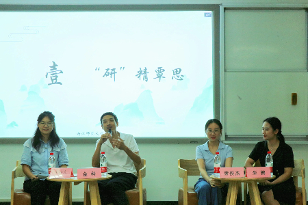 9月20日晚,人文学院超级“研”讨会于25幢202教室顺利举行。我院语言学与应用语言学专业席俊杰老师、研办金科老师,马克思主义学院辅导员朱柳老师出席本次“研”讨会,2023级中国古代文学专业硕士研究生程名担任主持,研一各专业同学到场聆听。