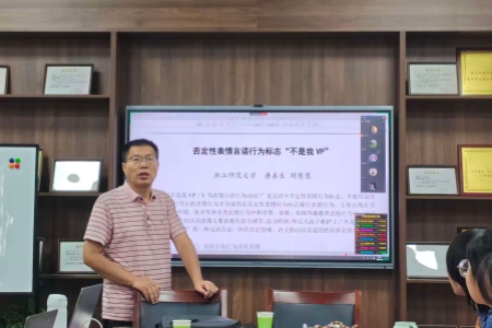 2025年9月26日下午两点,“语林望道”论坛第三十九次学术交流活动在浙江师范大学人文学院四楼语言学科会议室如期举行。本次活动采取线上线下相结合的方式进行,报告人为浙江师范大学人文学院唐善生教授,主持人为浙江师范大学国际文化与社会发展学院李艳芝副教授,参会者有人文学院傅惠钧教授,以及人文学院和国际文化与社会发展学院本、硕、博学生,共40余人。