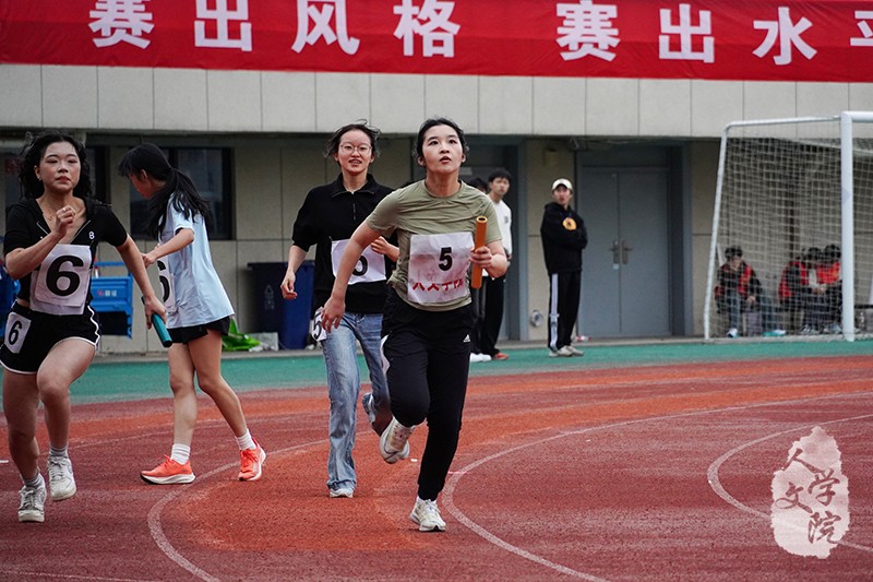 不断传递的接力棒是信任与团结的象征,正是靠着交接棒间的默契配合,她们在赛场上顶住压力,一步步向着终点迈进,最终为学院赢得荣誉。