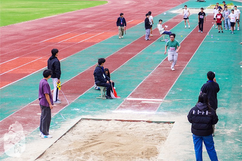 作为多次参加运动会跳远的老将,斯伏鸣一次次挑战自己,一次次在沙坑中落下属于自己的足迹。汗水浇灭不了热情,秋风吹不凉热血,这正印证着他的人文之心。