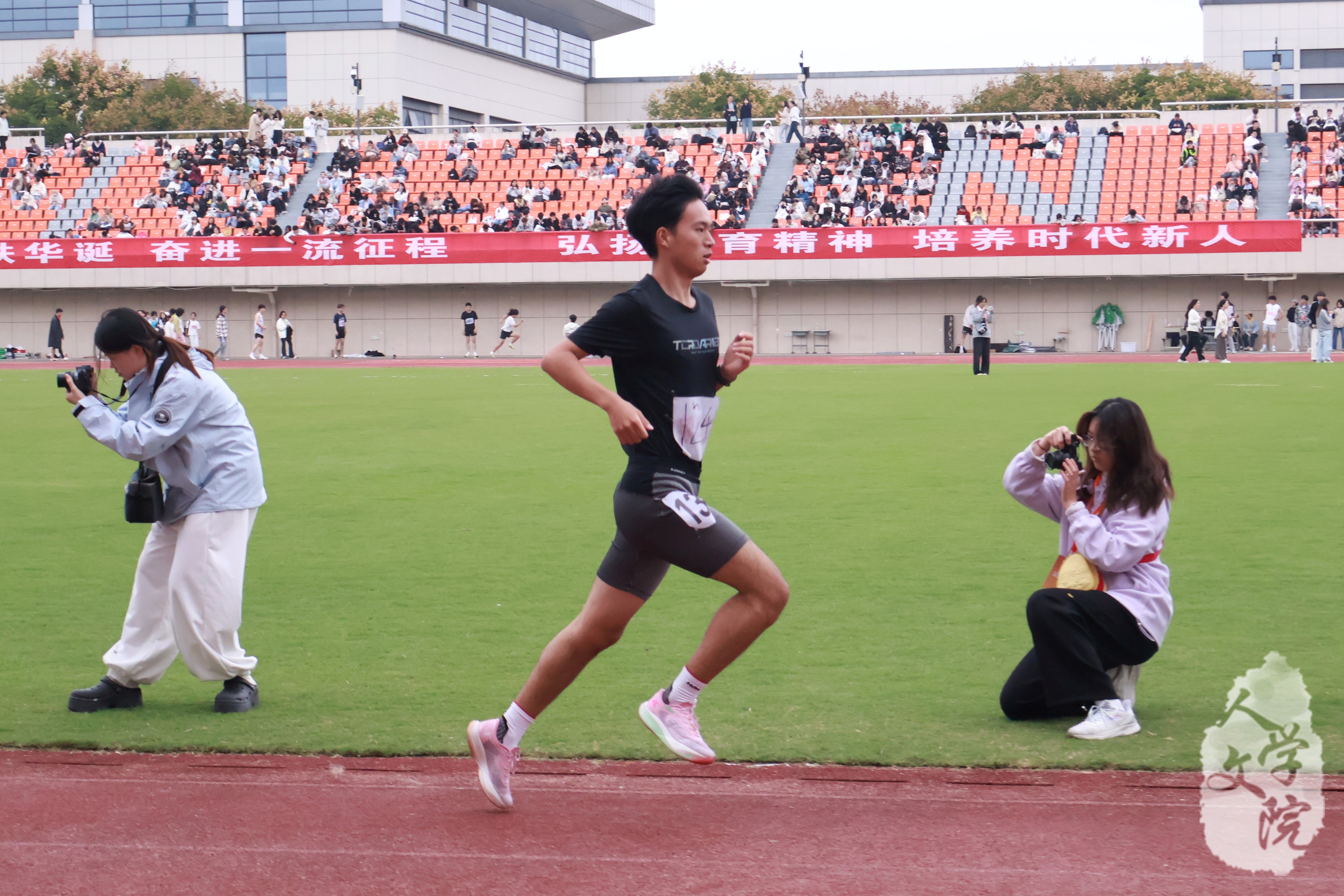 奔跑的脚步,丈量着青春的坚韧;挥洒的汗水,映照着拼搏的光芒。三位学子以不同的节奏,共同跑出了人文学院昂扬向上的精神风貌。