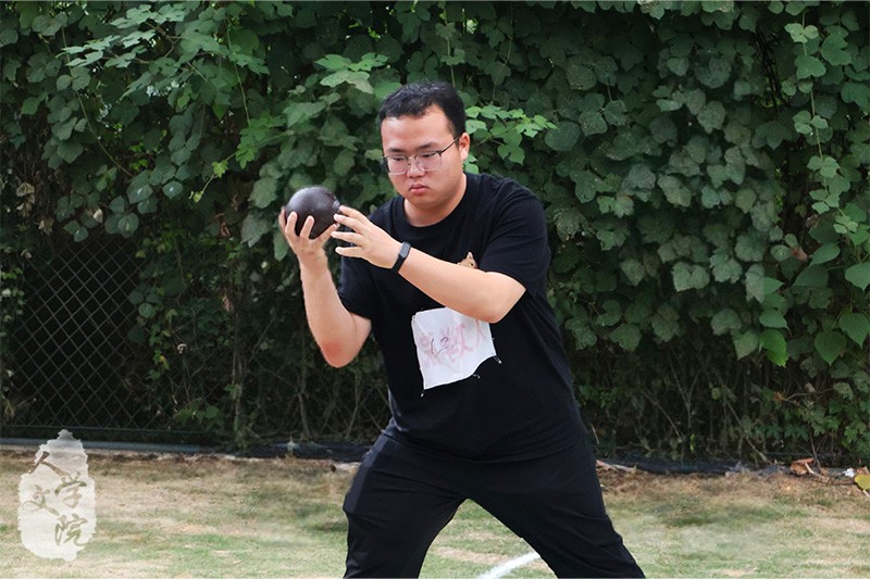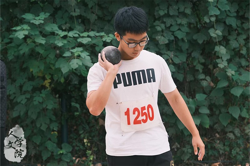 10月24日下午,历史学2501班王金彪和汉语言文学2504班姚懿峰代表人文学院参加男子铅球决赛。