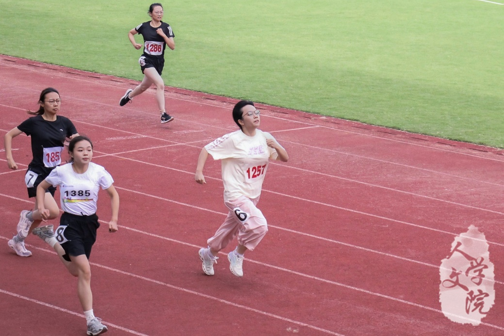 10月25日上午,女子200m预赛在东田径场举行。汉语言文学丽泽2301班韦羽熙、历史学2502班蒋佳雯、汉语言文学2407班王子昀、历史学2302班娄珮萌代表人文学院参赛。其中娄珮萌、韦羽熙在下午的决赛分别取得第四名和第六名的好成绩。