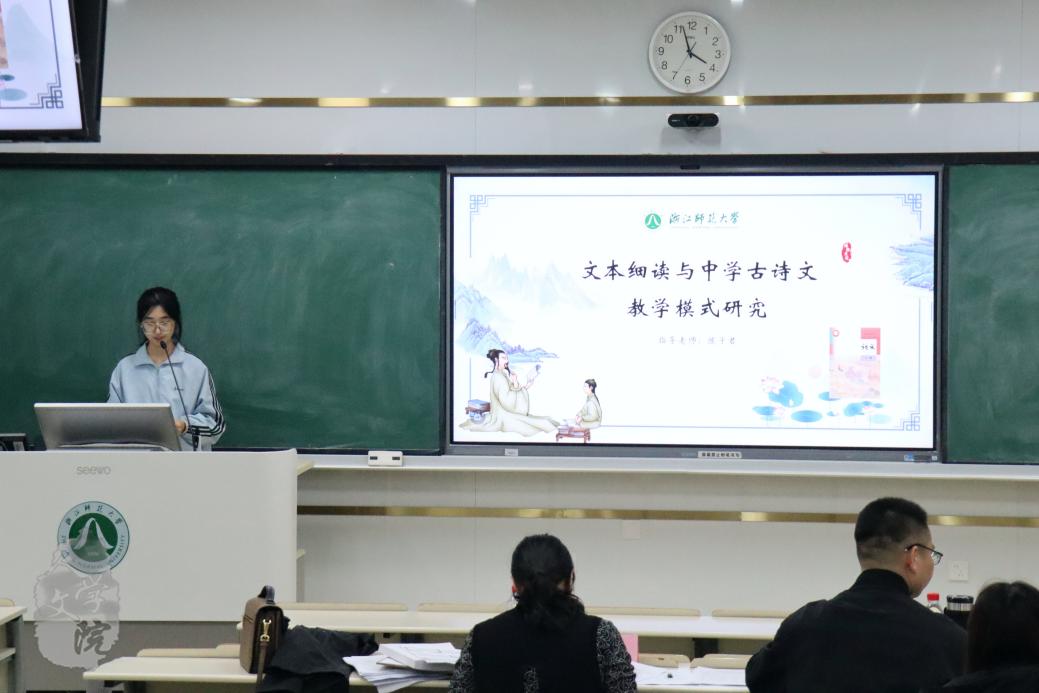 《文本细读与中学古诗文教学模式研究》课题组通过对王先霈的《文学文本细读讲演录》及孙绍振的《文学文本解读学》的集中研读以及集体研讨积淀理论储备,对课文深入细读并打磨教案,构建文本-教师-课堂-学生四维互动模型,以求教学实践走向深层次。高玉平肯定成果的同时,建议通过集体备课方式提高教案完整度。金晓刚鼓励进一步构建教学备课新模式。