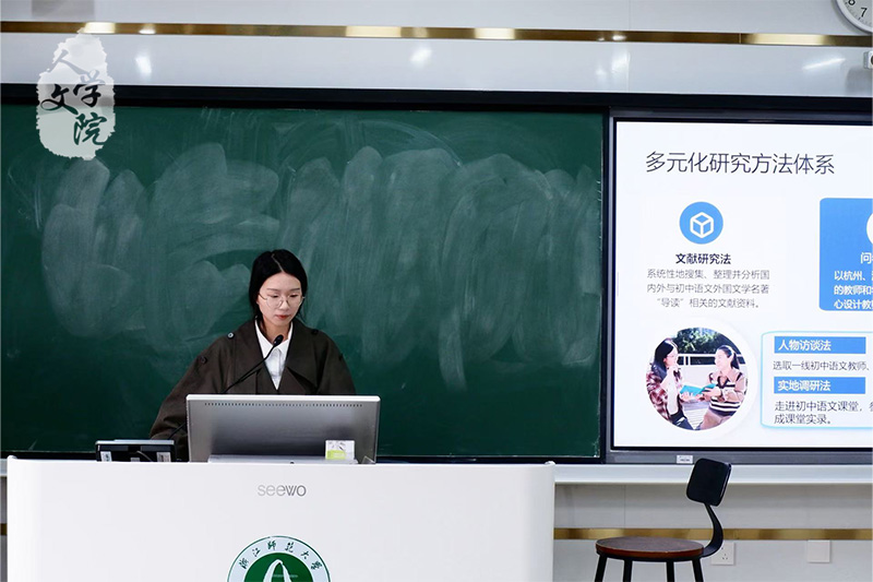 旨在提升学生审美素养,在教学中落实“立德树人”,《“语文美育”与促进高中语文深度教学的路径研究》课题组以《语文美育学》的理论研究为支撑,清晰界定“语文美育”这一概念,同时构建复合概念体系,实现理论的跨界融合。针对倪玲颖提出的“如何让美育在教学中落实”问题,答辩成员表示教师可将美育融合于教学设计,并引导学生从文本中感受美。