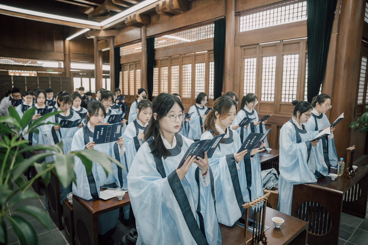 从地方课堂到国家平台,“八咏吟诵”十余年的坚持,映照出人文学院“教学相长、知行合一”的育人初心、“自由自律、修德修文”的院训传统。赵瑶丹表示:“文脉传承需要走出书斋、走进现场。当学生在八咏楼吟出千古诗句时,在东莱书院诵读《近思录》、演绎陈亮与辛弃疾的‘鹅湖之会’时,他们感知与触摸的不仅是诗文,更是在传承这座城市的文化基因,赓续这片土地的精神根基。”正如《文脉春秋》所呈现的——在金华这座“千古风流”之城里,有一群人以吟诵接续文脉,用实践诠释着“承古意而汇今智”的教育理想。