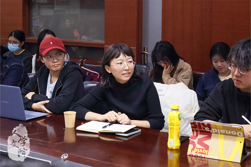 在问答环节中,在场的同学踊跃提问,与曾攀老师分别就“地方性与在地性的概念辨析”、“方言写作与文学传播的矛盾”、“文学新浙派的发展方向”、“AI文学的研究路径”等多个问题进行探讨。曾攀老师一一耐心解答,分别围绕着地方性具有自主文化系统,文学的核心价值在于作品本身的质量,文学繁荣的关键是作家保持个性化风格,文学创作未来将走向人机协同等几个观点为同学们解惑。